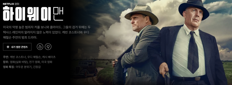 우리아버지 세대는 누구나 알만한 배우로 캐빈 코스트너가 있다. 그는 1990년대를 '늑대와 춤을'로 인기를 휩쓸었다. 그러다 초대형 쪽박 '워터월드'를 계기로 그의 커리어가 정점에서 내려가는 모양세를 보였다. 그러다 2015년부터 꾸준하게 작품활동을 해왔고 지금은 마이클 키튼과 부활하는 중년으로 대표되며 그것을 상징하는 '노장은 죽지 않는다'의 '하이웨이맨'으로 돌아왔다. 그의 부활이 가능한지 각자 평가해 보길 바란다.